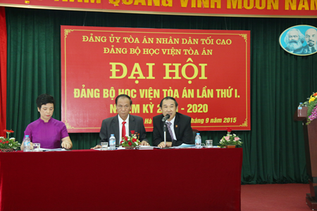 Ngày 03/9/2015, tại Học viện Tòa án, Đảng bộ Học viện Tòa án long trọng tổ chức Đại hội Đảng bộ lần thứ I, nhiệm kỳ 2015-2020, với chủ đề “Đại hội trí tuệ, đổi mới và phát triển bền vững”.