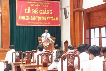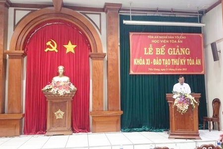 Đồng chí Trương Văn Sang, Phó Chánh án TAND tỉnh Tiền Giang trân trọng cảm ơn sự quan tâm của Học viện Tòa án; các đơn vị có liên quan đã phối hợp với Học viện trong việc tổ chức thành công khóa học. Đồng chí Trương Văn Sang yêu cầu đến các học viên sau khi đã học tập, tiếp thu được những kiến thức cơ bản từ các giảng viên truyền tải đến những kỹ năng nghề nghiệp, những kinh nghiệm từ thực tiễn. Từ đó mang về áp dụng vào quá trình công tác một cách hiệu quả cao nhất tránh những sai lầm đáng tiếp trong quá trình Thư ký phiên Tòa.