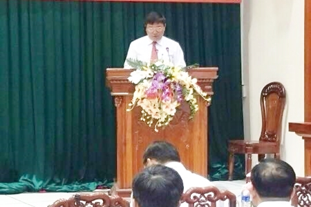 Đồng chí Trương Văn Sang, Phó Chánh án TAND tỉnh Tiền Giang phát biểu tại buổi Lễ bế giảng