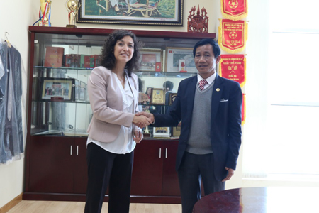 Tại buổi làm việc, đồng chí Nguyễn Thanh Mận, Phó Giám đốc Học viện Tòa án đã giới thiệu khái quát lịch sử phát triển của Học viện từ những ngày đầu thành lập đến nay, và giới thiệu chức năng đào tạo, bồi dưỡng các chức danh tư pháp cho cán bộ công chức Tòa án. Đồng chí Phó Giám đốc cũng giúp bà Helene trả lời các câu hỏi cũng như giải đáp thắc mắc về sự khác biệt giữa Học viện Tòa án với Học viện Tư pháp về chức năng, nhiệm vụ, đối tượng đào tạo và các chương trình đào tạo.