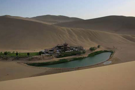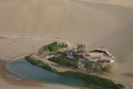 Nằm cách TP. Đôn Hoàng thuộc miền tây bắc Trung Quốc 6km, hồ Crescent (trong tiếng Trung là Yueyaquan) là hồ nước ngọt có hình bán nguyệt.
