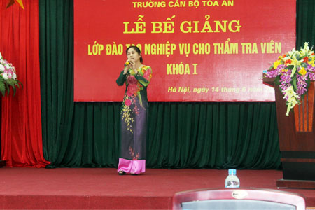 Ghi nhận sự nỗ lực cố gắng của tập thể cán bộ, giảng viên Trường Cán bộ Tòa án, đồng chí Tưởng Duy Lượng, Phó Chánh án TANDTC rất vui mừng vì sự thành công của khóa học. Đồng chí nói: đây là khóa đào tạo nghiệp vụ xét xử đầu tiên của Trường Cán bộ Tòa án nên trong quá trình học tập còn gặp một số khó khăn như ; tài liệu giảng dạy chưa được xây dựng thành bộ giáo trình bài bản; đội ngũ giảng viên cơ hữu còn rất thiếu, các giảng viên chủ yếu là kiêm nhiệm, vừa công tác tại các đơn vị, vừa tham gia giảng dạy tại nhà trường; học viên là các cán bộ vẫn đang công tác tại các đơn vị, có nhiều đồng chí là Lãnh đạo đơn vị, vì vậy áp lực về thời gian và công việc đã ảnh hưởng không nhỏ đến kết quả học tập. Đồng chí hy vọng các học viên ngoài việc mang những kiến thức học được về áp dụng tốt cho công việc chuyên môn của mình, ngoài ra các đồng chí nên có những đóng góp thiết thực để chương trình đào tạo nghiệp vụ xét xử - Thẩm tra viên của nhà Trường ngày càng hiệu quả hơn.