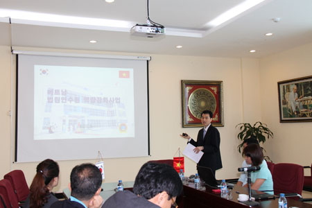 Nhân dịp này, Thẩm phán OH Byung Hie với tư cách là Giám đốc Dự án tại Việt Nam cũng giới thiệu về các kết quả hoạt động hợp tác quan trọng trong lĩnh vực đào tạo và kế hoạch hợp tác trong thời gian tiếp theo; qua đó nhận được sự quan tâm rất lớn của Đoàn công tác.