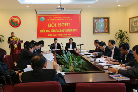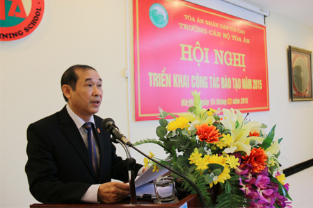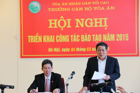Về kế hoạch triển khai công tác năm 2015: đây là năm đầu tiên các cơ quan Tòa án thực hiện các quy định mới của Hiến pháp 2013 và Luật Tổ chức Tòa án nhân dân mới; có thể nói năm 2015 là năm có rất nhiều công việc nặng nề và khó khăn mà Trường Cán bộ Tòa án cần phải phấn đấu hoàn thành. Song cũng là năm có ý nghĩa đặc biệt đánh dấu sự phát triển khi Trường Cán bộ Tòa án được nâng cấp thành Học viện Tòa án. Do vậy, đòi hỏi cán bộ, công chức Trường Cán bộ Tòa án phải nỗ lực, tích cực phấn đấu nhiều hơn nữa để hoàn thành các nhiệm vụ được giao. Cán bộ, công chức các Phòng, Khoa thuộc Trường Cán bộ Tòa án phải khẩn trương, tích cực hoàn thiện các công việc nhằm đảm bảo Kế hoạch đào tạo, bồi dưỡng cán bộ công chức và Hội thẩm nhân dân năm 2015 của Trường Cán bộ Tòa án đã được Lãnh đạo Tòa án nhân dân tối cao phê duyệt.
