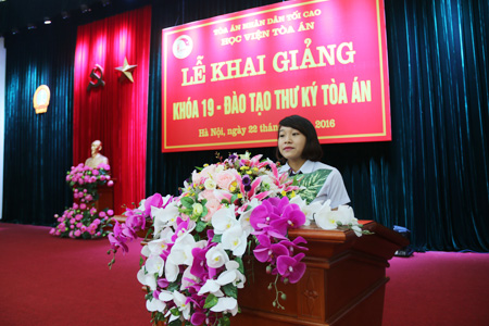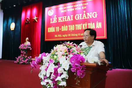 Phát biểu chỉ đạo tại buổi lễ khai giảng, ThS. Trần Văn Hà, Phó Giám đốc Học viện Tòa án nhấn mạnh công tác đào tạo nói chung, đào tạo Thư ký Tòa án nói riêng là một trong những nhiệm vụ trọng tâm của Học viện Tòa án nhằm không ngừng nâng cao chất lượng của đội ngũ các chức danh tư pháp, qua đó nâng cao chất lượng xét xử, giải quyết các loại án, đáp ứng được mục tiêu cải cách tư pháp trong giai đoạn hiện nay. Học viện Tòa án vừa đưa vào sử dụng các công trình xây dựng mới, nên Khóa 19 - Đào tạo Thư ký Tòa án được học tập trong điều kiện vật chất hết sức khang trang, hiện đại và nhà trường cũng tạo điều kiện hết sức để các em yên tâm, thoải mái học tập. Đồng chí Phó Giám đốc cũng bày tỏ sự tin tưởng rằng, với sự cố gắng hết mình của Học viện Tòa án và toàn thể các em học viên, chúng ta sẽ có một Khóa học thành công, lưu giữ nhiều kỷ niệm đẹp về trường, lớp, thầy cô và bạn bè.