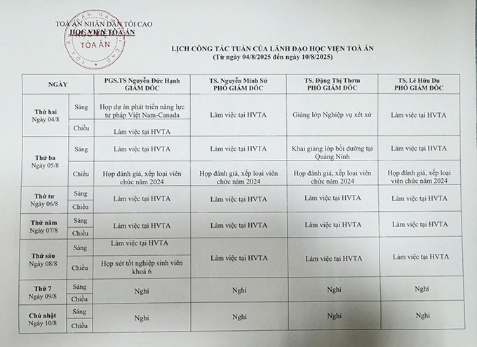 LỊCH CÔNG TÁC